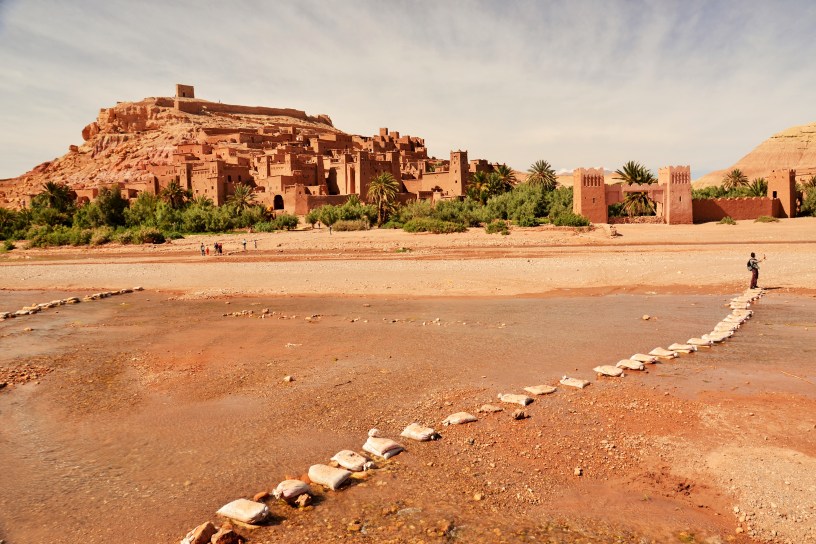 Po zastávce na čaj a oběd sjíždíme z hor a pomalu se přibližujeme prvnímu cíli našeho roadtripu, kterým je pevnost, tzv. kasba, Aït Benhaddou. Tady je bohužel silnice v rekonstrukci, a tak nás čeká kus cesty v prachu po provizorní cestě. Kasba je pod ochranou UNESCO a mnozí ji jistě poznávají, jelikož se zde natáčelo mnoho známých filmů, např. Lawrence z Arábie či Gladiátor. Místo je neskutečně fotogenické. Projděte se úzkými uličkami kasby, vyšplhejte až do nejvyšších míst a užijte si výhledy na okolní palmy a kamenitou poušť zvanou hammada. Je možné koupit zde suvenýry či si dát něco k snědku.