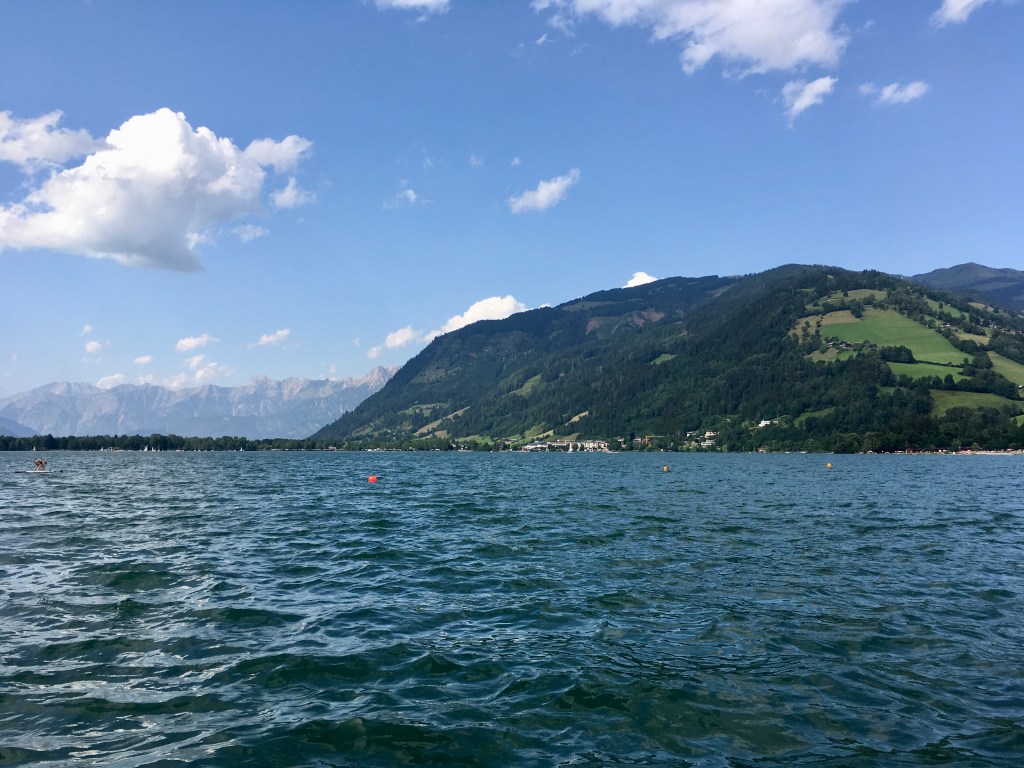 - Zell am See – Procházka městem po promenádě podél Zeller See s krásnými výhledy na okolní vrcholky je povinností. Ve Stadparku jsme objevili sympatické dětské hriště. Můžete si tu půjčit loďku, paddleboard nebo se vydat na organizovanou plavbu po Zeller See.